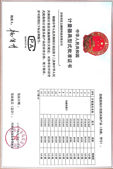 計量器具型式批準證書(shū)-1